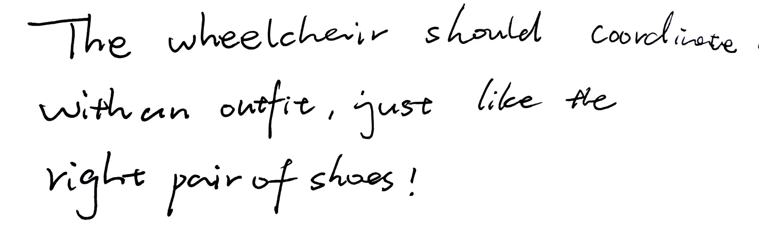 These moments made a deep impression on me and led me to reimagine the wheelchair through the lens of fashion, not as a clinical object, but as an extension of personal style and identity. Inspired by clothing and the rituals of dressing, I began to explore how wheelchairs could become expressive, adaptable, and deeply personal.